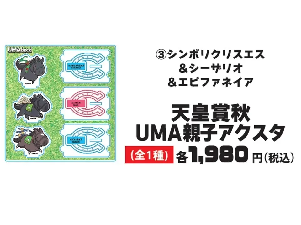 POPUPに登場するUMAbredのラインナップには、天皇賞(秋)を制した名馬たちのデザインが含まれます。これらはレース史で実績を残した馬たちをモチーフにしたグッズ化で、ファンにとってはコレクション性の高いアイテム群となります。