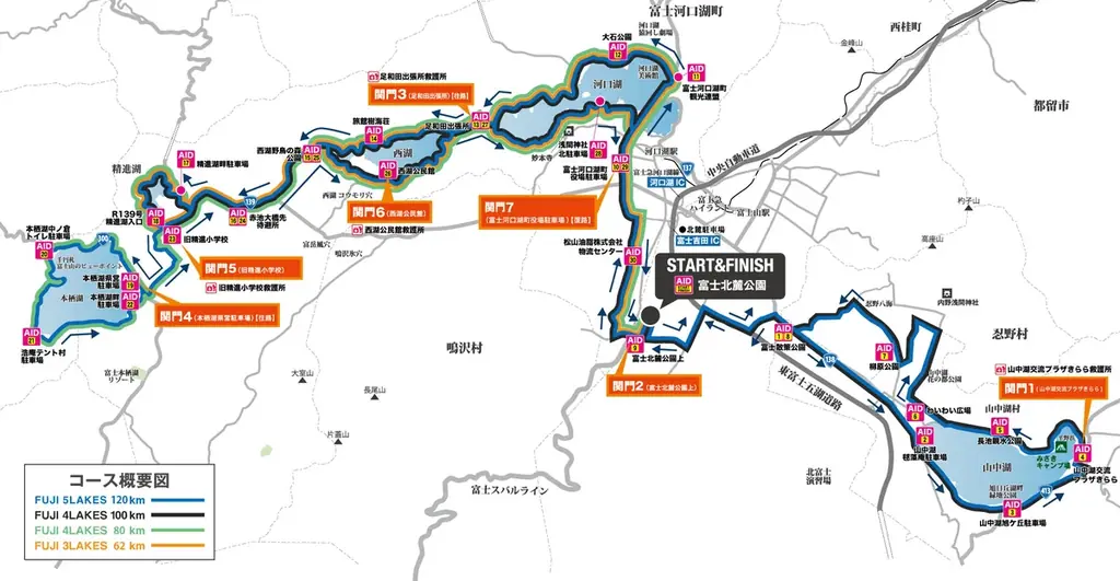 - FUJI 5LAKES 120km:富士五湖すべてを巡る最長コース。距離は120km。