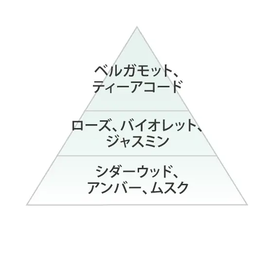 - ホワイトティー&ジャスミン: ジャスミンがほのかに香るホワイトティーをベースに、レッドシダーとローズのアクセント。