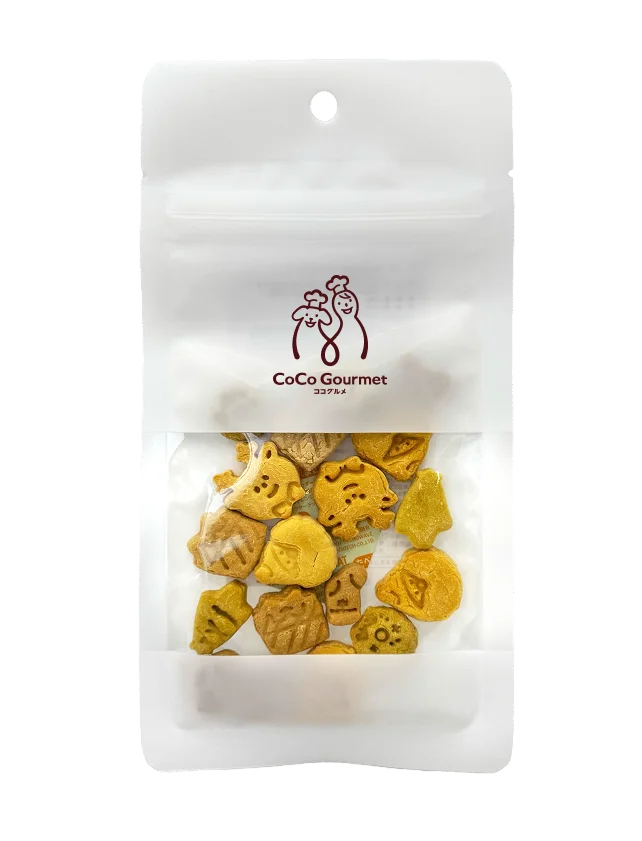 クッキーはどちらも米粉をベースに平飼い卵を用いた製法で、保存料・着色料・香料・酸化防止剤不使用です。小型犬やシニア犬にも食べやすい柔らかさに設計されています。