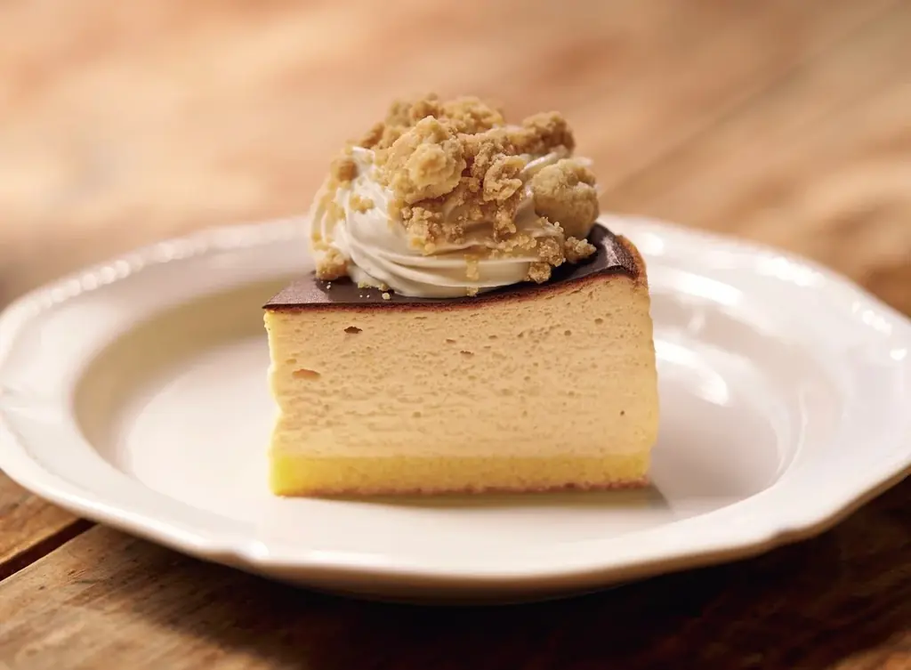 - 再現ポイント:クリームチーズとエメンタールの二種チーズ配合、ビターキャラメルパウダー入り生地