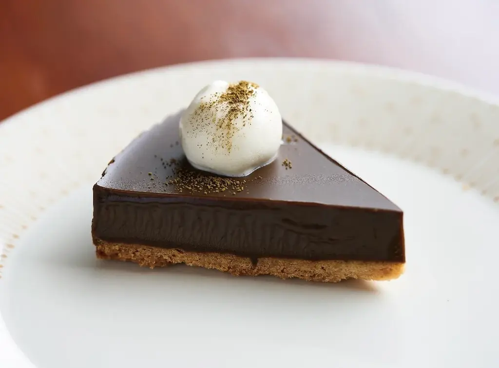 看板スイーツである「焙じ茶のタルトショコラ」は、店主がこだわった焙じ茶を使用し、香ばしいタルト生地と濃厚なチョコレートで構成されています。今回の小さなチョコパイは、その香りと食感の印象を保ちながら、手軽に楽しめる形で再現しています。