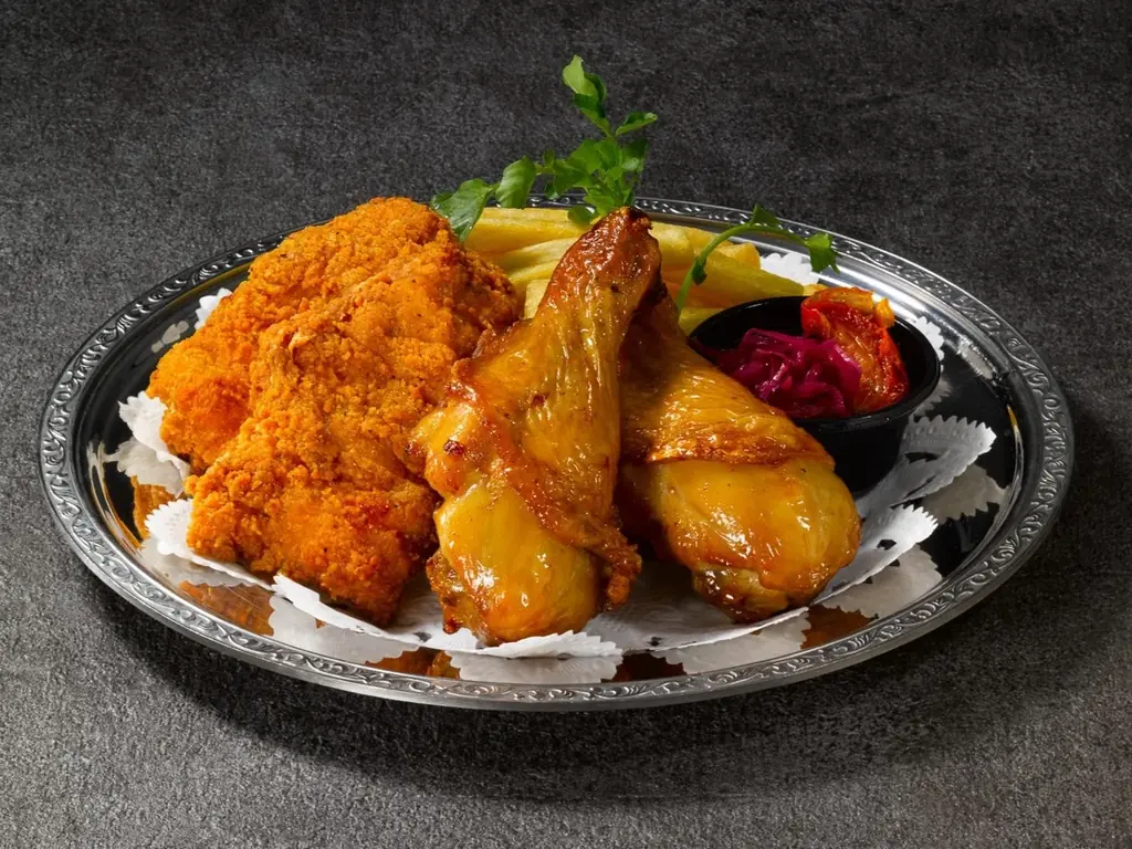 - クリスマスチキンプレート:1,800円(税込)— フライドチキン、ローストドラムスティック、チップス、レッドキャベツとセミドライトマト添え