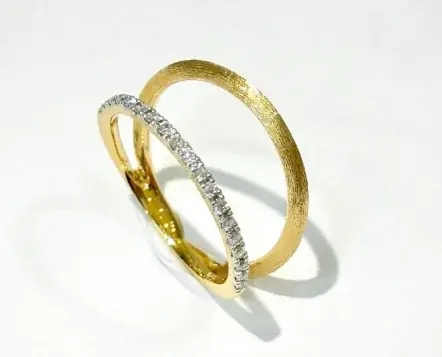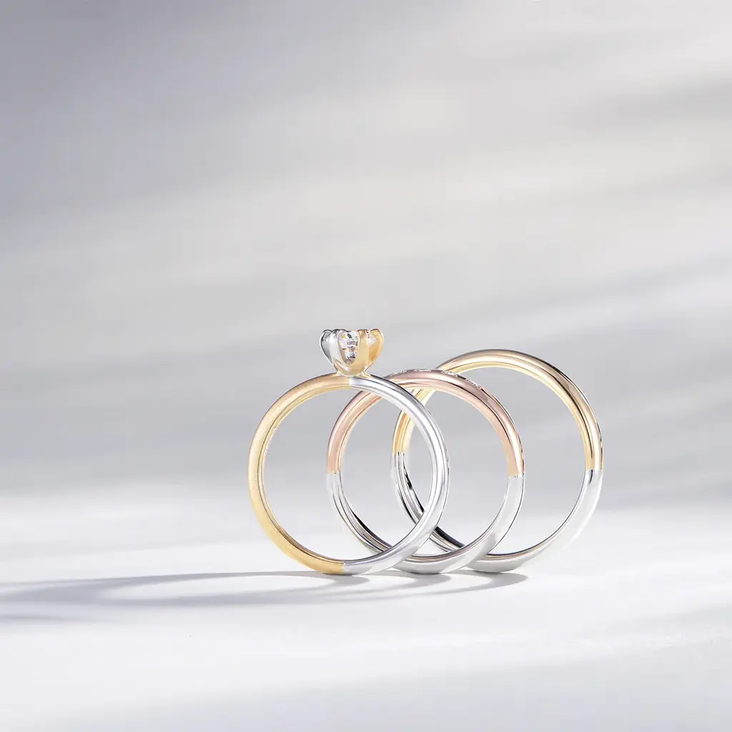 K18やプラチナなど異なる素材の組み合わせをコンセプトにしたリング。別々の二人が一緒になるというストーリー性を重視し、形式よりも自分たちらしさを選ぶ令和の結婚観に対応したデザインです。