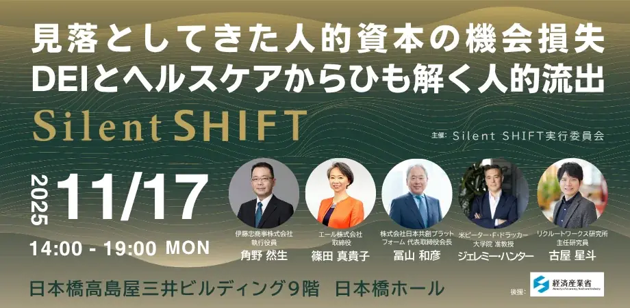 主催・協力体制としては、当社および陽と人が協力企業として参画する「Silent SHIFT 実行委員会」が主催し、株式会社Cradle、NTT PARAVITA株式会社、伊藤忠商事株式会社がパートナー企業として参加します。経営層、専門家、現場担当者が一堂に会し、実務的な支援策や共創の可能性が議論される予定です。
