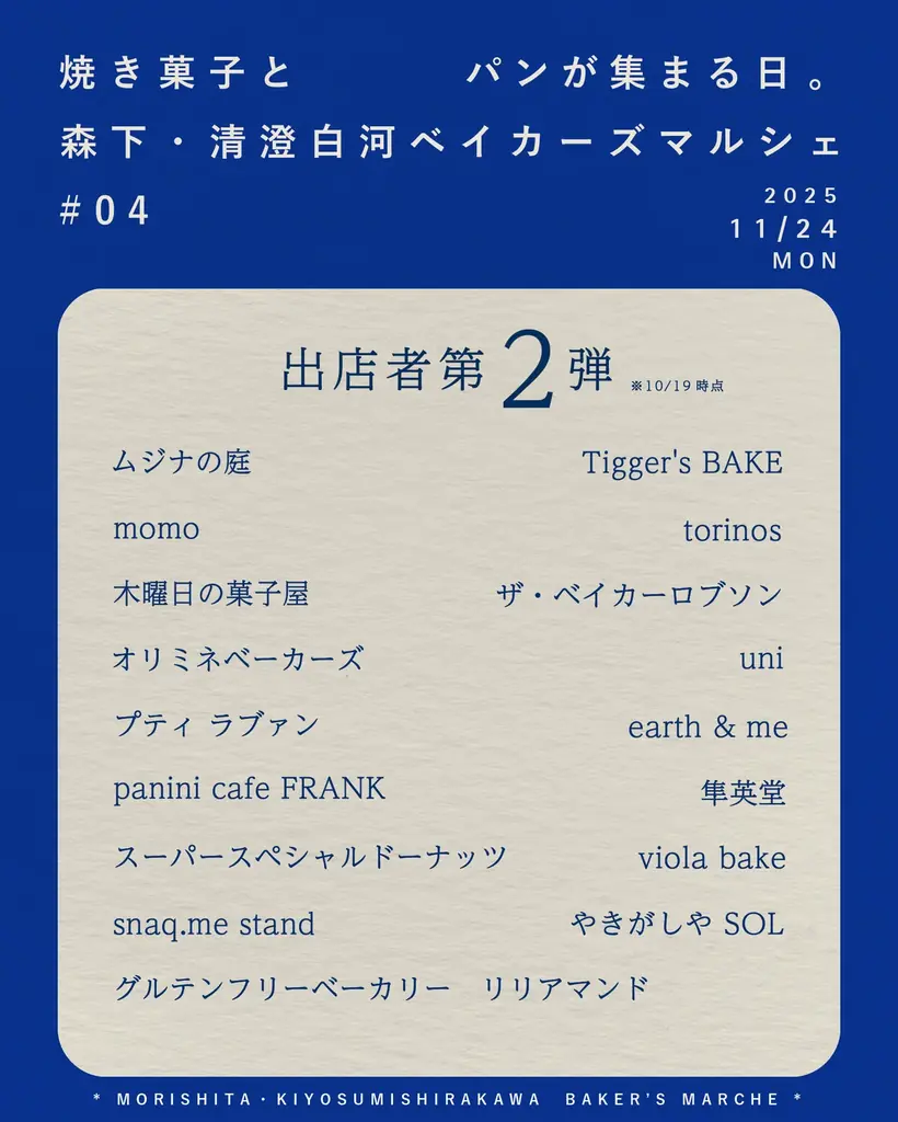『森下・清澄白河ベイカーズマルシェ』第4回開催!焼き菓子とパンの専門店が1日限定で集まる。「焼き菓子とパンを巡る!ベイカーズ・ロゲイニング」も同時開催!【11/24(月・祝)】 画像 2