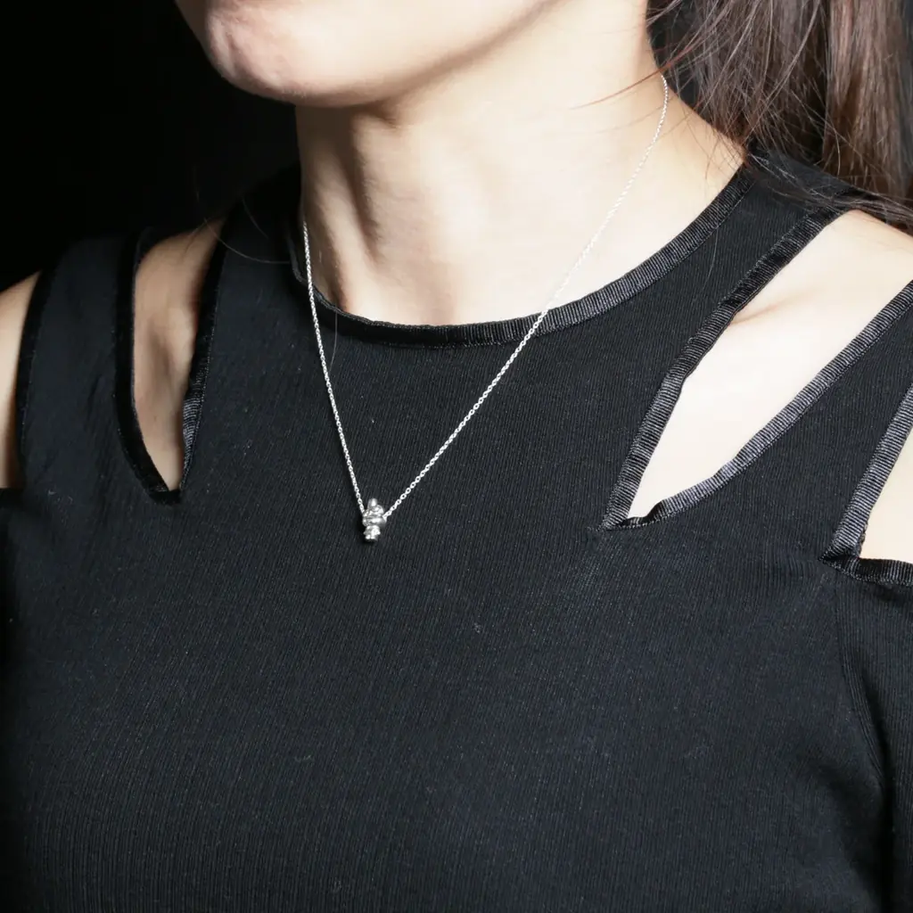 各キャラクターの全身をシルバー925仕様で3D精巧に表現したネックレス。チェーン長は40+10(cm)で、チェーンとトップはシルバーカラー。各キャラクターの背中には黒バーが設けられ、その内部に四つ葉のクローバーの種を封入している。