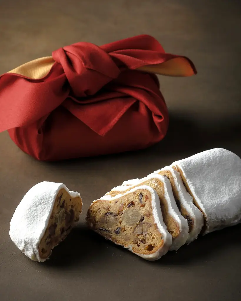 アマン京都が2025年のホリデーシーズン向けに用意した〈丹波栗のシュトーレン〉は、ドイツの伝統菓子であるシュトーレンに日本の素材感を融合させた一品です。総支配人 溝渕康雄のもと、エグゼクティブペストリーシェフ松尾浩幸が監修し、最上級の和栗として名高い丹波栗をふんだんに用いて焼き上げています。