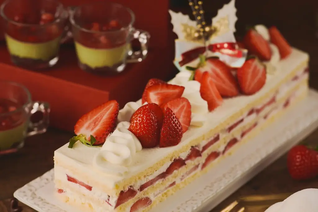 和洋折衷の要素も取り入れつつ、定番のショートケーキやブルーベリータルトのほか、ホリデーシーズンならではのシュトーレンやクグロフ、ツリーやトナカイをかたどったミルクレープなど、視覚的にも季節感を強めるメニューが並びます。