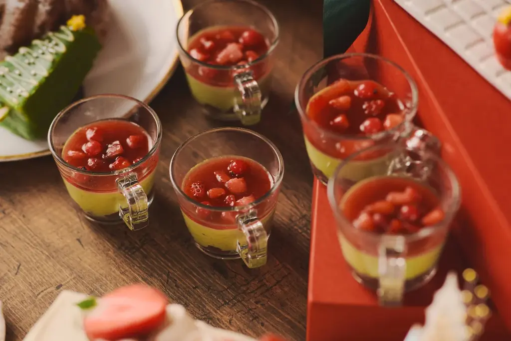 本ビュッフェは「HoHoHo サンタクロースのスイーツパーティー」と題され、クリスマスの世界観を表現した見た目と味わいを重視したラインナップが特徴です。