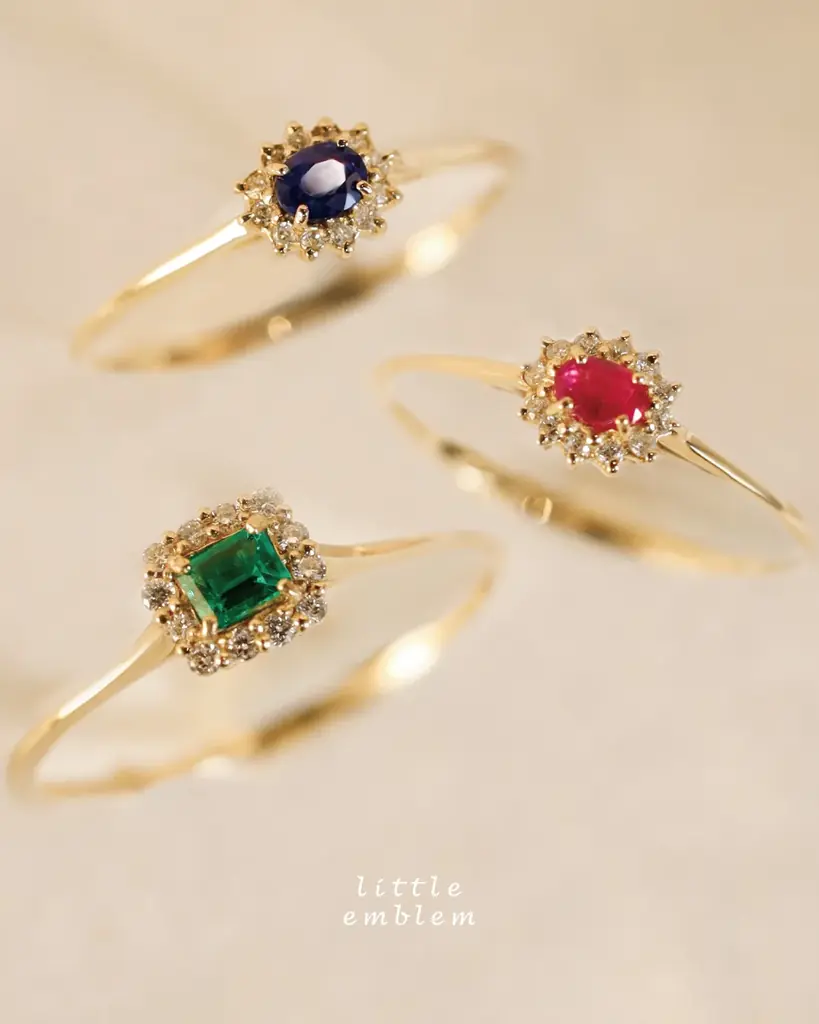 little emblemはファインジュエリーラインで、K9ゴールドを中心に小さなモチーフと天然石を用いた繊細なジュエリーを揃えます。すべてのジュエリーに小さなルビーがセッティングされており、「お守り」としての意味を込めたコレクションです。