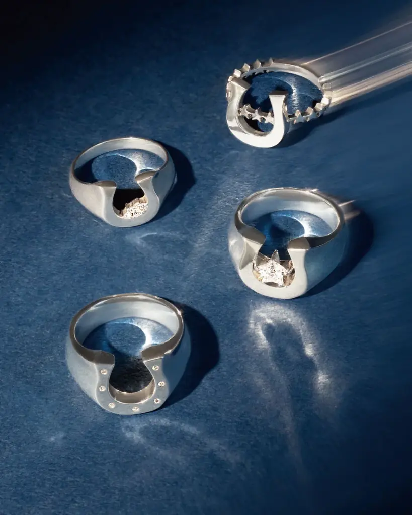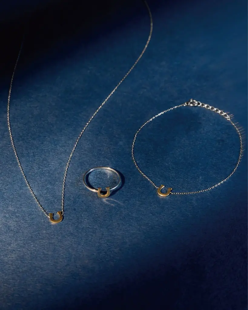 e.m.の2025 HOLIDAY COLLECTIONは「AUSPICIOUS(幸運)」を主題に、馬蹄や十字星、スターモチーフを中心にしたデザインを展開します。冬の夜空を想起させるドラマチックなラインナップで、カジュアルからフォーマルまで幅広い着用シーンを想定しています。