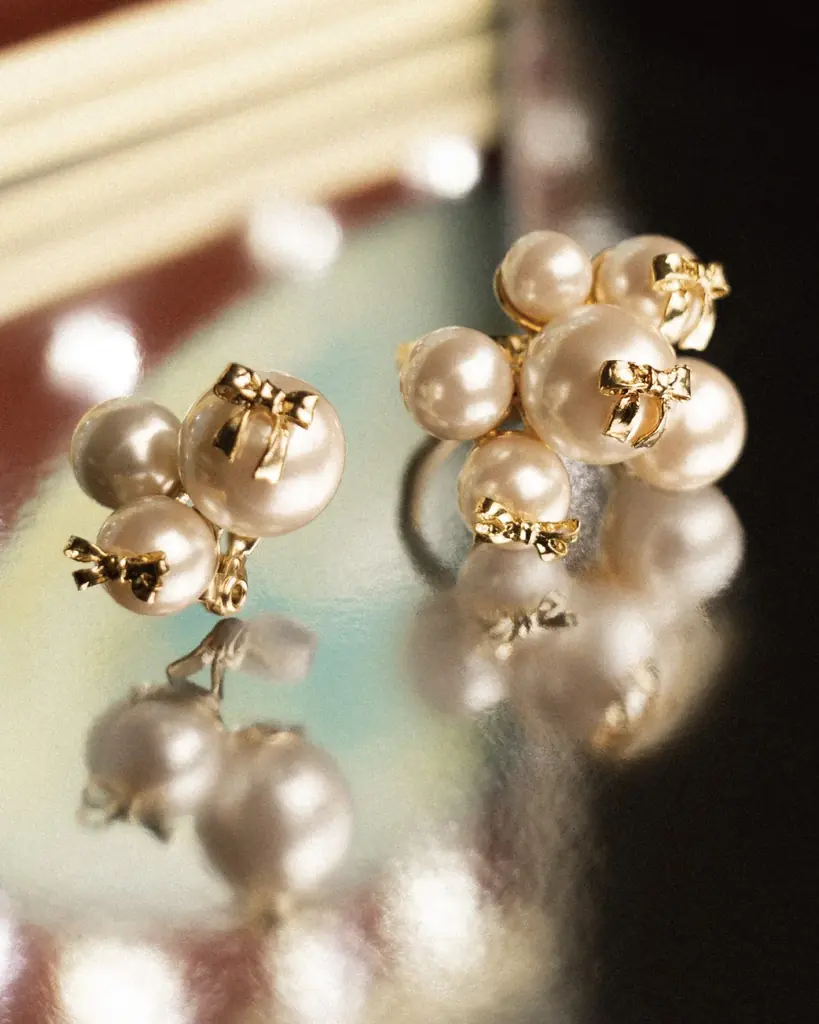 - ピアス※シングル(ポリエステルレジン、真鍮、プラスチックパール、パール塗装、メッキ) ¥27,500 ※HOLIDAY COLLECTION limited