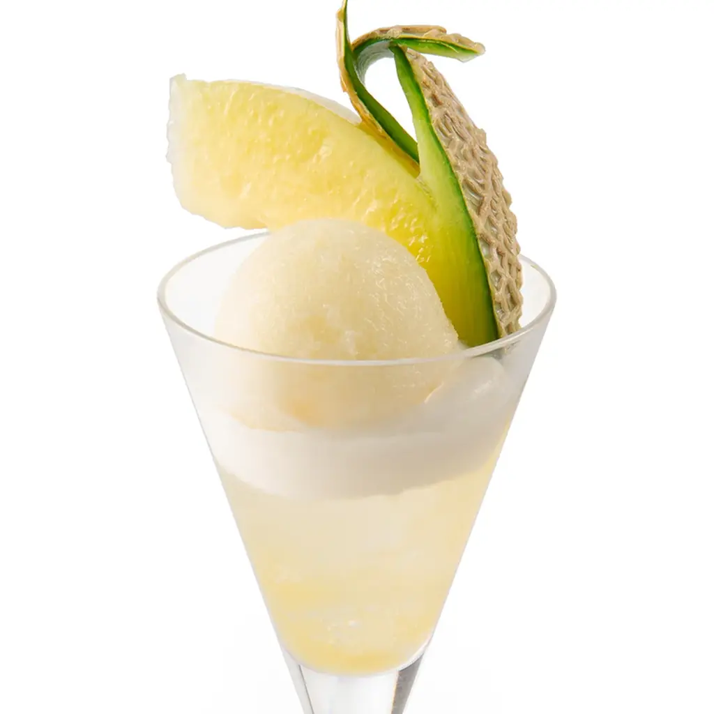 平日限定のタイムリミテッドメニューとして、自家製メロンシャーベットのミニパフェを提供します。これは店内で製造した芳醇な香りのメロンシャーベットを主体に、メロンソース、コアントローゼリー、ディプロマットクリームを重ねた構成です。