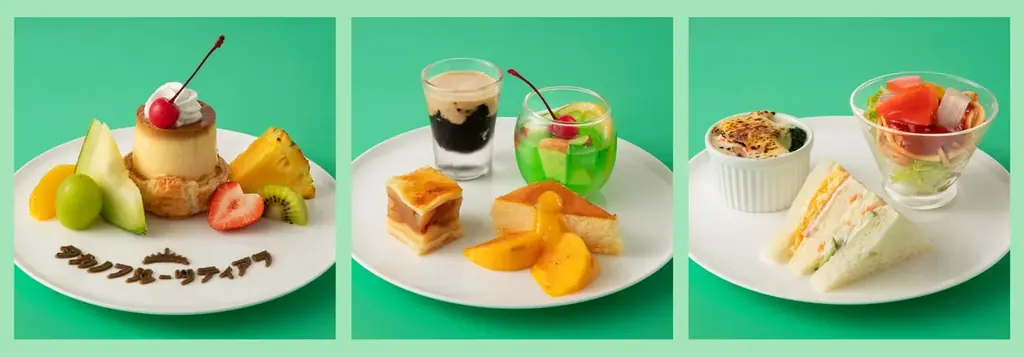 提供期間中は純喫茶を想起させるレトロなメニュー構成を採用し、季節のフルーツと組み合わせて楽しめる構成です。アフタヌーンティーはお一人様につきおひとつまでの提供となり、コーヒーまたは紅茶はホット/アイスを問わずおかわり自由です。写真はイメージでの案内となります。