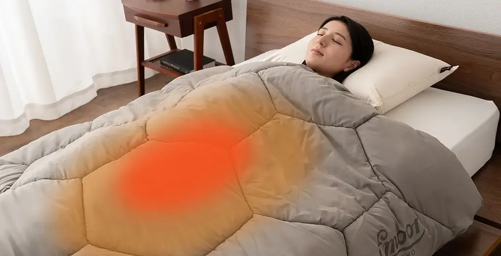 また、遠赤外線放射により身体の内側からじんわり暖める効果が期待でき、表面だけでなく体幹近くの保温が持続しやすいのが特徴です。これにより、夜間の冷えを抑えつつ自然でやさしい暖かさを維持できる設計になっています。