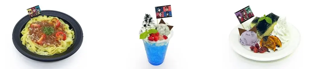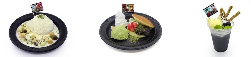各部屋に対応した執事たちをモチーフにしたデザート&フードを販売します。対象メニューには部屋にひもづく絵柄のイラストシートが1枚付属し、絵柄は選択可能です。ただし一部商品にはイラストシートが付属しません。