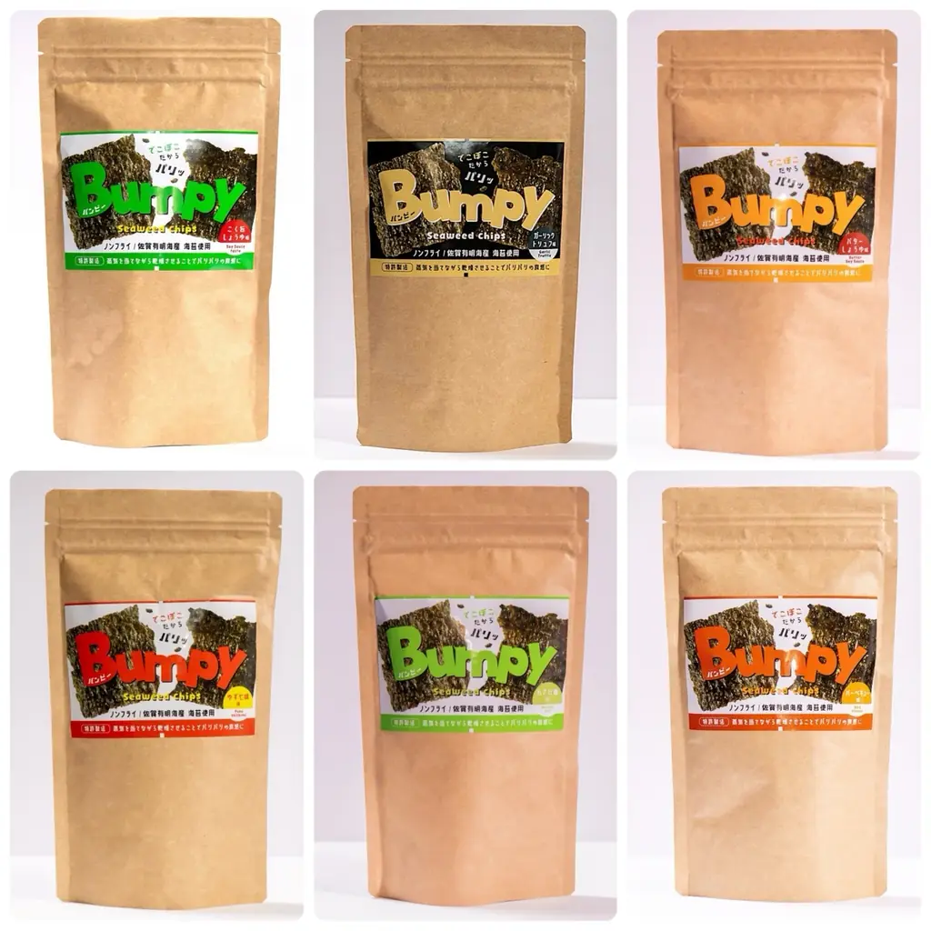 商品名はBumpy(バンピー)。フレーバーは全6種で、多様な味わいを揃えています。ノンフライ製法により低カロリー志向の消費者にも配慮した仕様です。