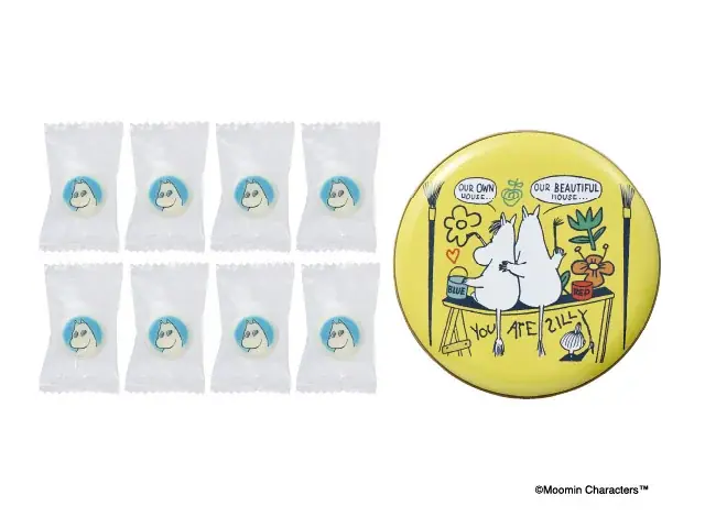 キャンディ缶は丸い缶にムーミンのキャンディを詰めた商品で、味はやさしいヨーグルト味が採用されています。手作業での製造のため、絵柄の大きさや配置、色の濃淡に個体差があります。