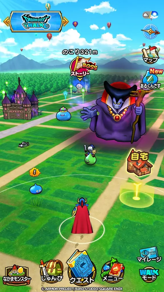 プレイにあたっては、周囲の環境に注意する旨の注意喚起や、画面操作を最小限にして自動で戦闘や回復を行う「ウォークモード」の利用推奨が案内されています。ゲーム内の仕様や実施内容は予告なく変更される場合があります。