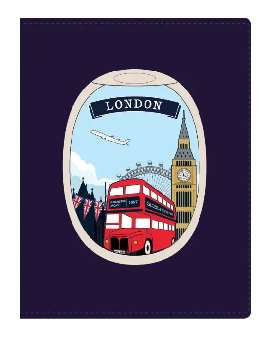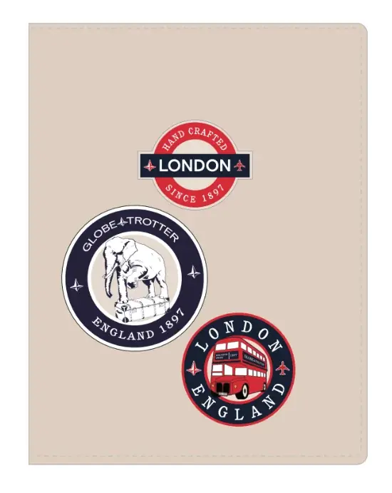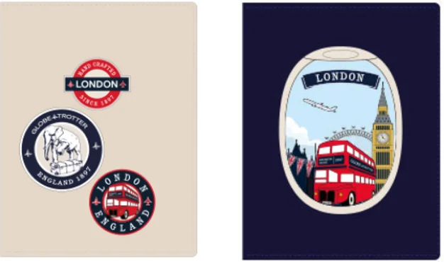 アイボリーはロンドンやグローブ・トロッターの象徴的アイコンをステッカーアートとして展開するデザイン、ネイビーは機窓から見えるロンドンの風景をイメージしたデザインとなっています。いずれも旅の相棒として長く使えるよう、細部まで職人の手で丁寧に仕上げられます。