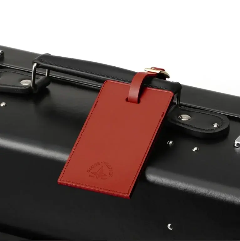 ラゲッジタグは、上質な牛革を用いたJALオリジナルデザインで、イギリスの職人が一つひとつ丁寧に仕上げた製品です。グローブ・トロッターとJALのロゴがタグの表裏それぞれに配され、ナチュラル、レッド、ネイビーの3色で展開します。