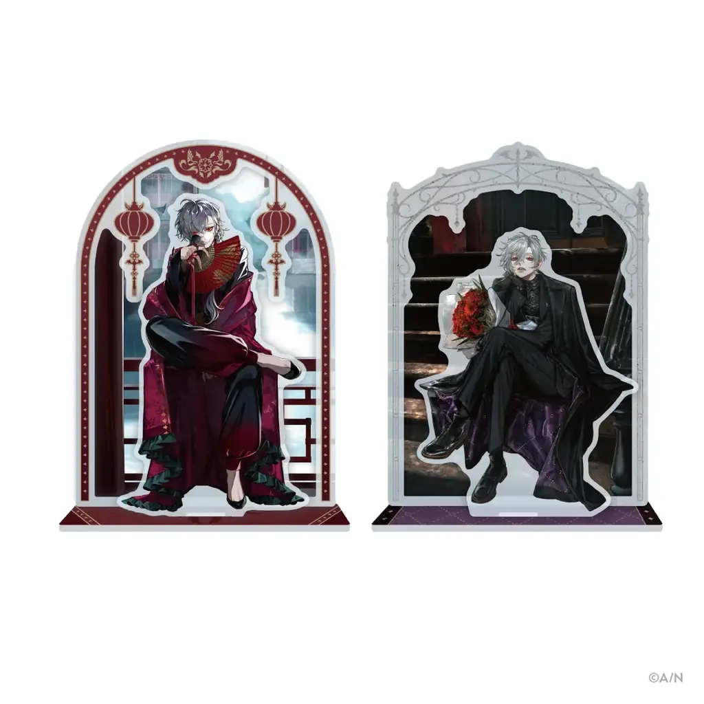 背景付きアクリルスタンド 各2,500円 全2種 本体:W93mm×H138mm以内、背景:W108mm×H154mm以内、台座:W107mm×H33mm(種類により差異あり) アクリル お1人様1会計につき各5点まで
