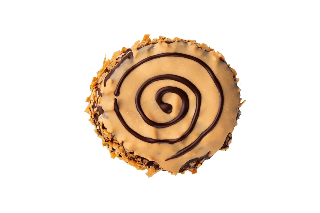 • コーヒーチョコブッシュドノエル:税込360円。コーヒーとチョコのほろ苦さ、そしてサクサクのフィアンティーヌを組み合わせた、大人向けのブッシュドノエル風味のドーナツです。