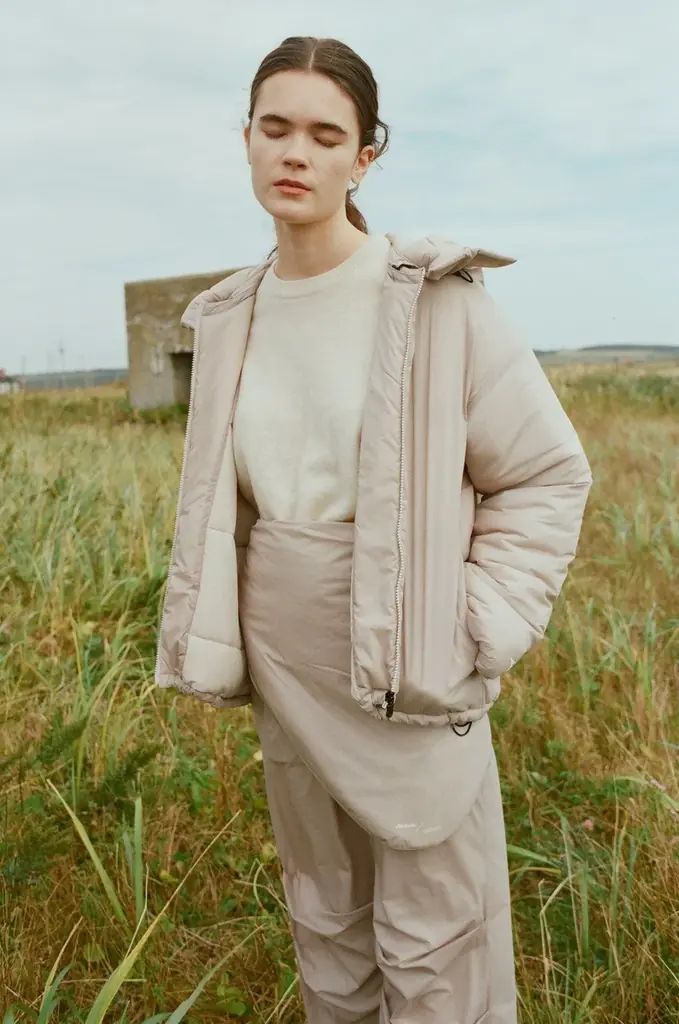 本コラボレーションは、emmiが提案する「クリアモード」を基調としたシンプルで洗練されたデイリーウェアに、ミズノが長年培ってきた機能素材を組み合わせることで、季節や天候に左右されない快適さと見た目の整合を図る試みです。アイテムはアウター、パンツ、スニーカーなど複数をラインアップします。
