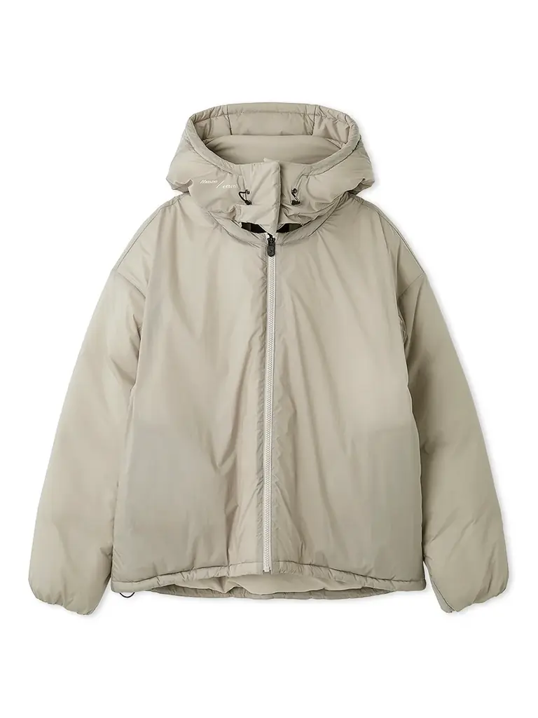 特徴:ミズノ独自の中綿素材である『テックフィルブレスサーモ』を身ごろ全体に採用したマルチウェイアウターです。裾のスピンドルでシルエット調整が可能で、フードは取り外してノーカラーに変更できます。付属のポケット付きショールは頭や腰巻きとして使用でき、保温とファッション性の両立を図っています。