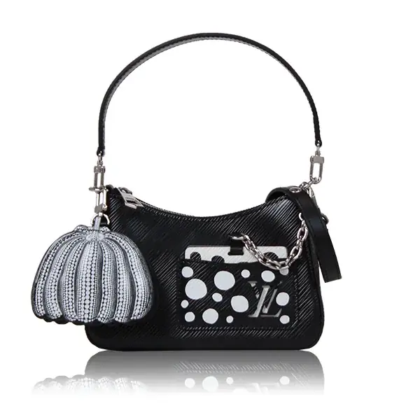 リリースによれば、ルイ・ヴィトンの「マレリーニ」はブラックレザーにドット柄やパンプキンモチーフのチャームがあしらわれたデザインで、クラシックさと遊び心を両立させています。モダンな要素と個性を重視した設計が特徴です。