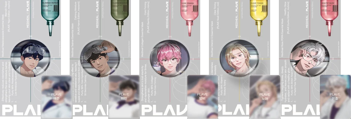 PLAVEのメンバーカラーと成分を掛け合わせた限定パッケージ『エッセンシャルマスク 5種』が登場します。各種は以下の通りです。