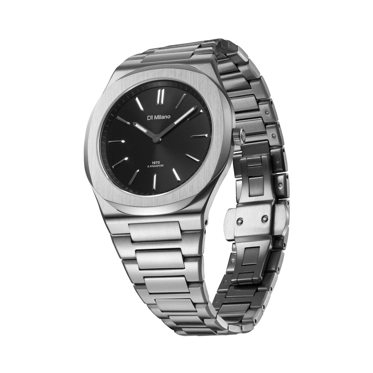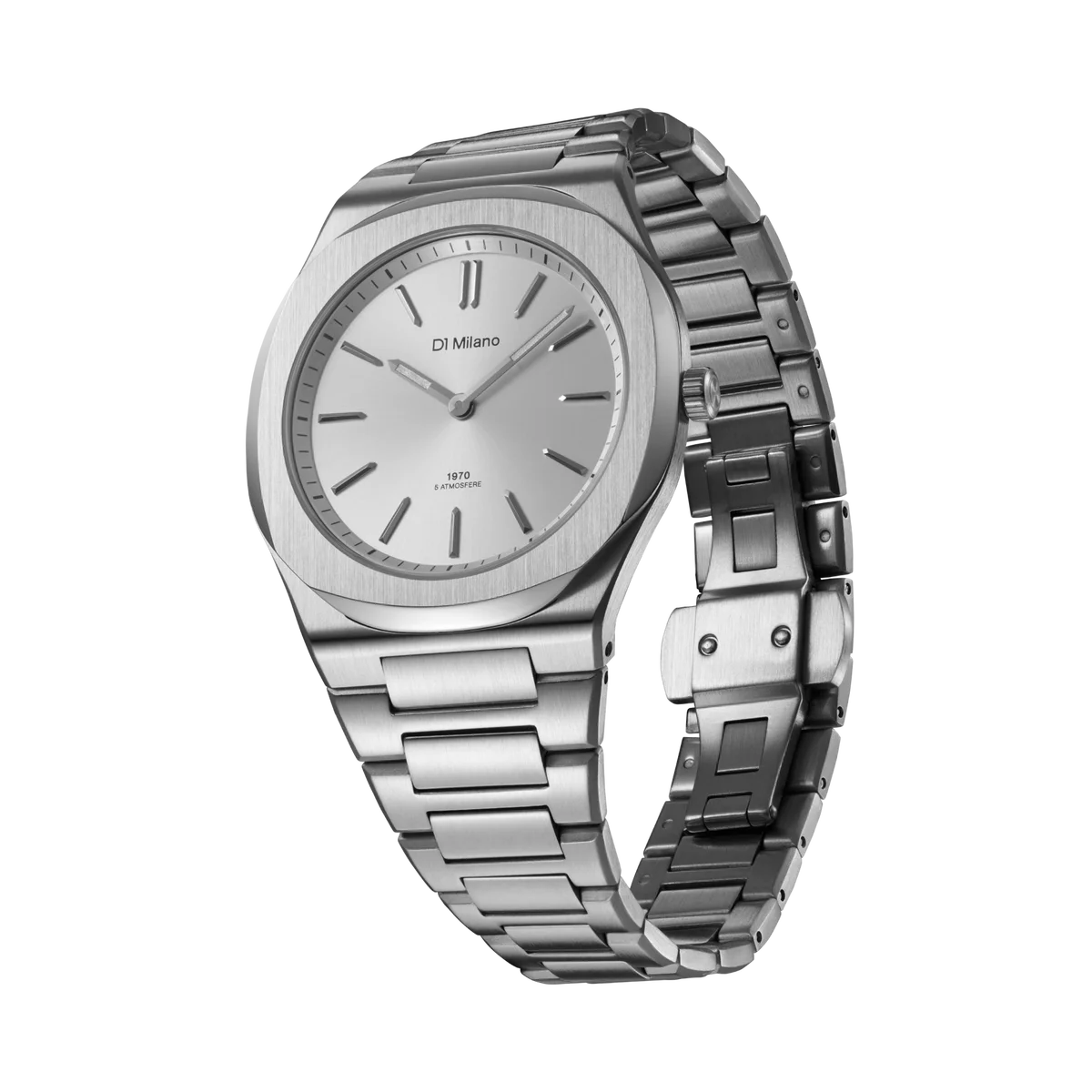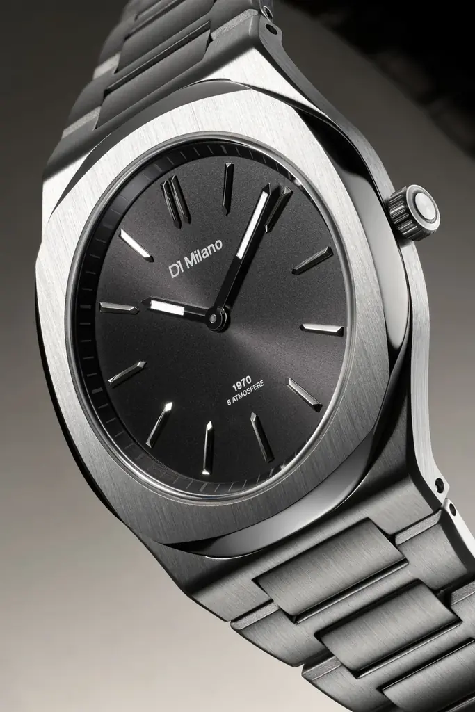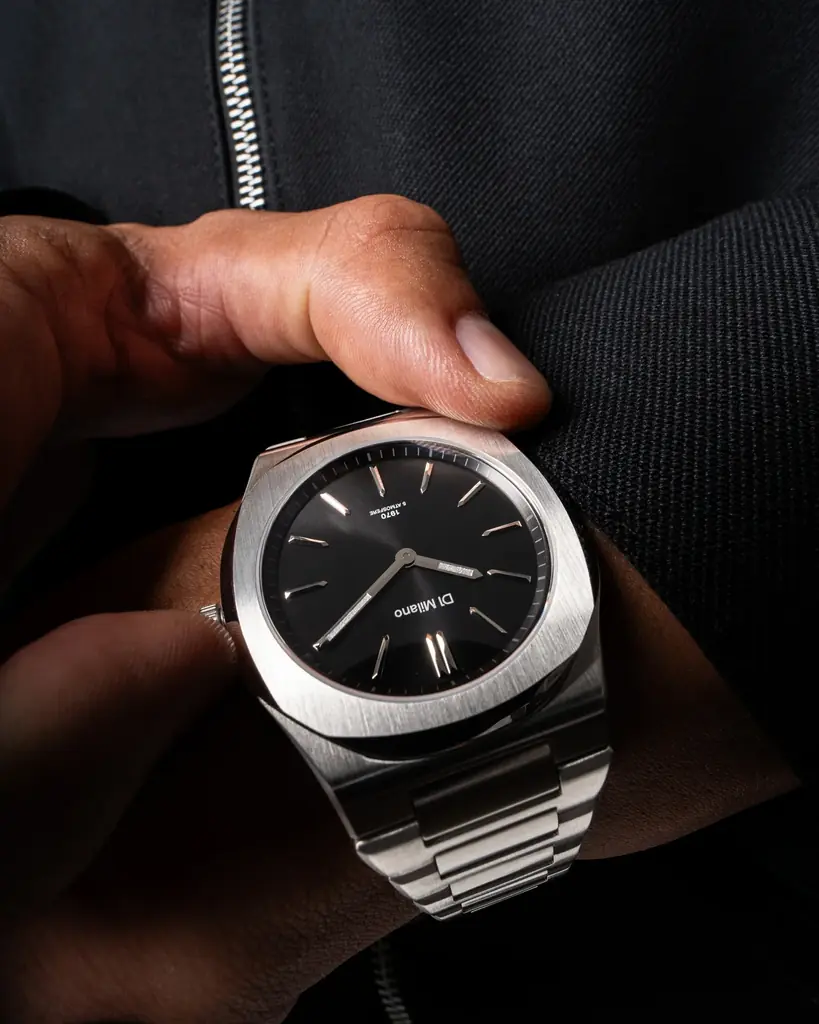 同日発売となる「ULTRA THIN 1970」は、1970年代の美学を現代の感性で再構築したモデルです。D1 MILANOを象徴する極薄ケースをさらに進化させ、従来モデルより約10%薄くした新設計ケースを採用しました。