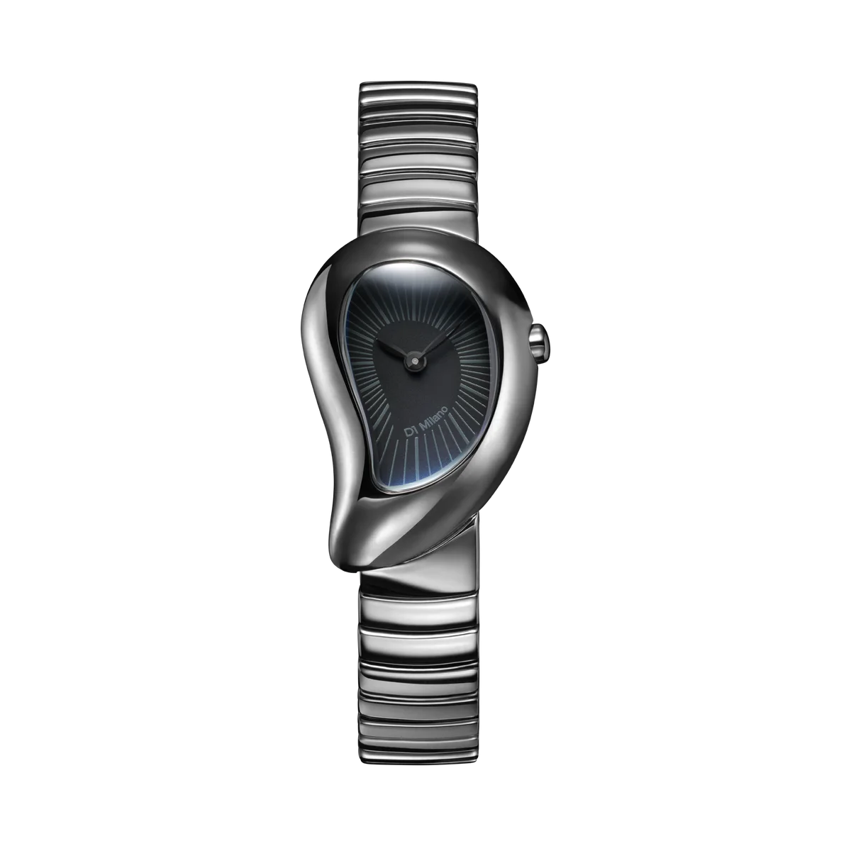 ブランドが掲げる哲学「FORM BEFORE TIME(時よりも、フォルムを)」を体現するプロダクトとして、DROPは「液体が落ちる瞬間」をデザインコンセプトに採用し、従来の直線的なケース設計から離れた曲線と陰影による造形美を追求しています。