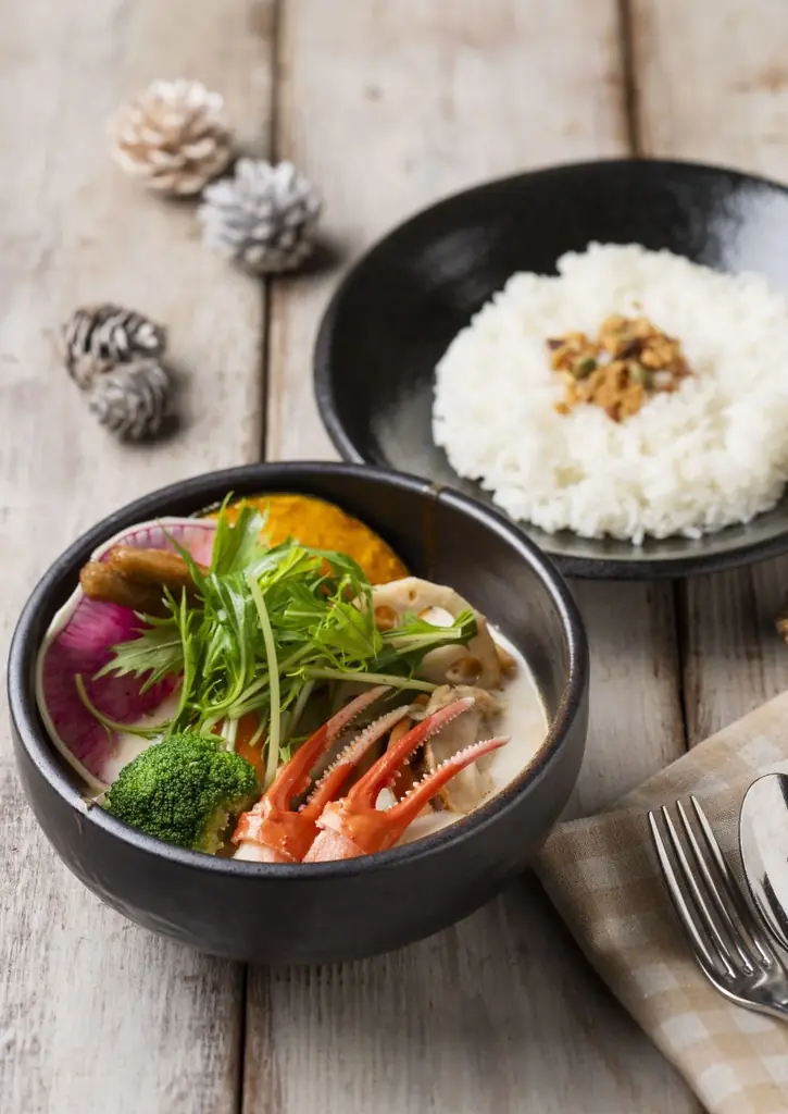 白いスープカレー ~紅ズワイガニと猿払産ホタテ~(あんとるぽー) 11/1~12/25 各店舗営業時間に準ずる カレーレストラン・あんとるぽー 1,850円(税込) 店頭提供