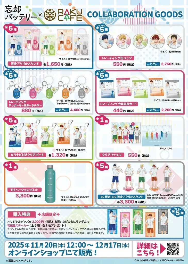 11月20日開始『忘却バッテリー』×RAKUCAFEコラボ、池袋・心斎橋で限定グッズ