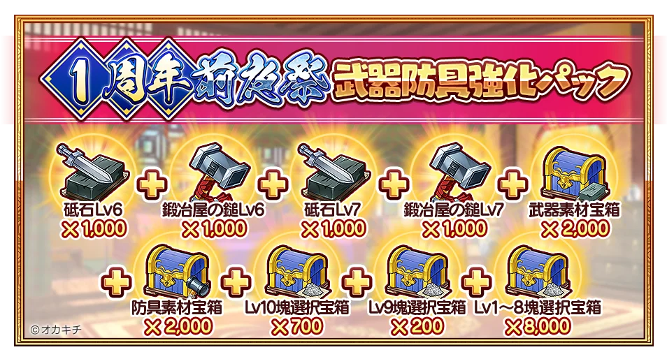さらに、お得な記念限定パックが販売されます。期間は2025年10月29日(水)18:00から2025年11月12日(水)14:00までで、兵糧引換券、伝令鳩、官位ポイントが大量に入った実用的なパックや、武器・防具の強化に役立つ育成素材を多く含むパックなど、プレイに直結する内容が用意されています。