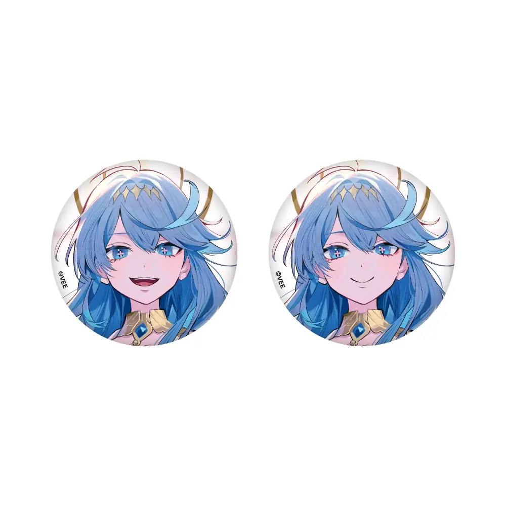 缶バッジは2個セットでの販売となります。こちらも尾崎ドミノ氏描き下ろしのイラストが用いられており、コレクションやバッグ等の装飾に適しています。