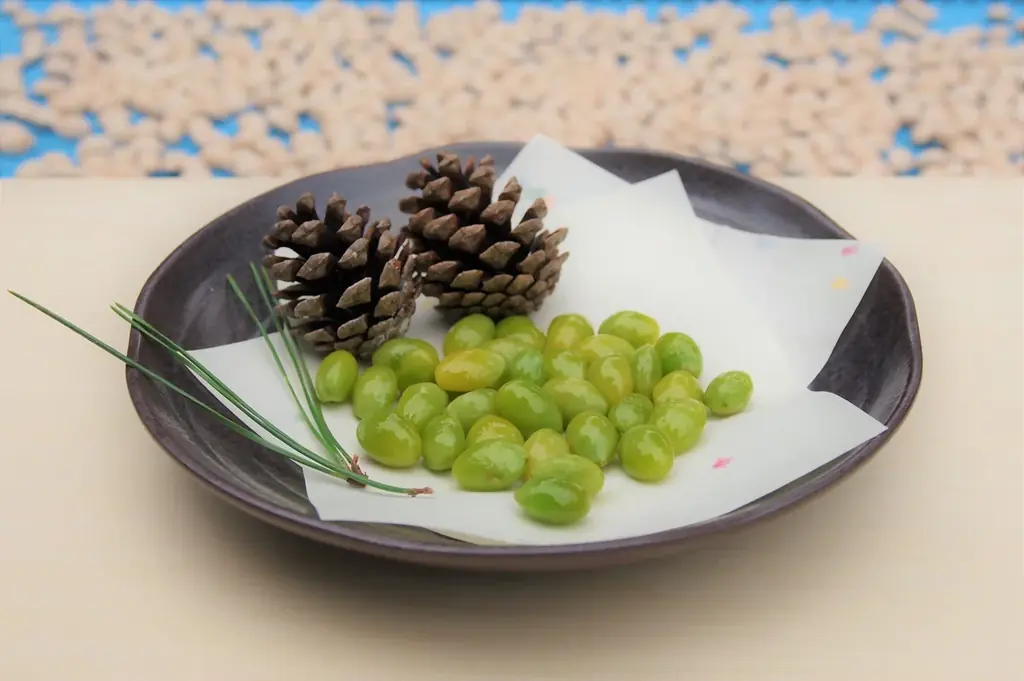 特徴: 清水区では早出しで9月に出荷が始まる。ヒスイ色の美しさ、真空パックで鮮度を保つ流通。