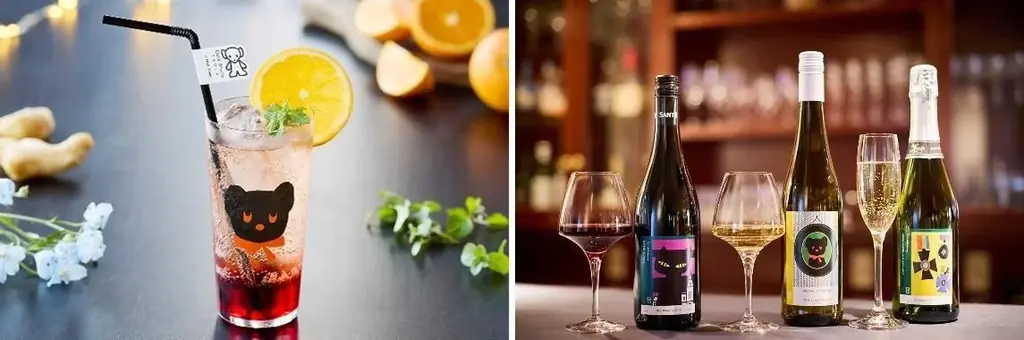ホテルアムステルダムの「オークラウンジ」では、ディック・ブルーナ テーブル限定のワインやカクテルを提供します。ノンアルコールカクテルの「ルージュセレナーデ」は、爽やかな甘みとオレンジ・ミントの華やかさを特徴とする鮮やかなルージュカラーのドリンクとして紹介されています。ワインはラベルのデザイン性も含めて提供され、落ち着いた空間での大人のひと時を想定した品揃えです。オークラウンジの営業は2026年1月4日(日)までです。