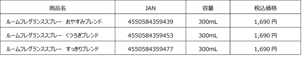 | 対象外 | 製造工場が異なるルームフレグランススプレー、インテリアフレグランスオイル、エッセンシャルオイル等 |