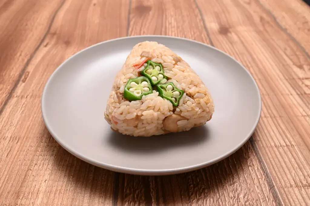 グローバルグループは「日本と支援先のアフリカを、おにぎりでつなぐ」をテーマに考案。アフリカで親しまれるトマトを使った炊き込みご飯(ジョロフライス)をヒントに、だしとまいたけの風味を組み合わせて日本人の味覚にも馴染む炊き込みご飯に仕上げています。