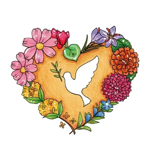 第2年目のデザインは、春・夏・秋・冬それぞれを象徴する花々を6種ずつ選定し、それらをやさしく寄り添わせるようにハート型に配置。中央には平和の象徴である白い鳩を配し、季節ごとの空気や光を想起させる色彩で仕上げています。単なる装飾にとどまらず、多様性や互いを尊重するメッセージを込めた表現として制作されています。