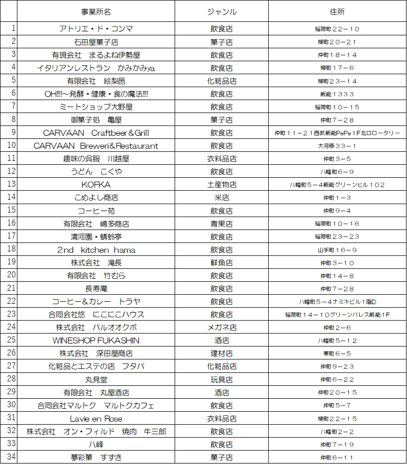 • はんのう満喫!クーポン(1,000円相当):飯能市内の取扱加盟店で利用可能