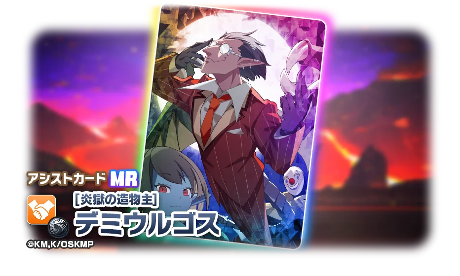 | アシストカード(MR) | 「【炎獄の造物主】デミウルゴス」 | 黒のMR友人タイプ。トレーニングでカードキャラを集めやすくする「オーラトレ集合率アップⅡ」を所持し、黒モンスター・黒オーラ技を強化する能力を持つ。 |