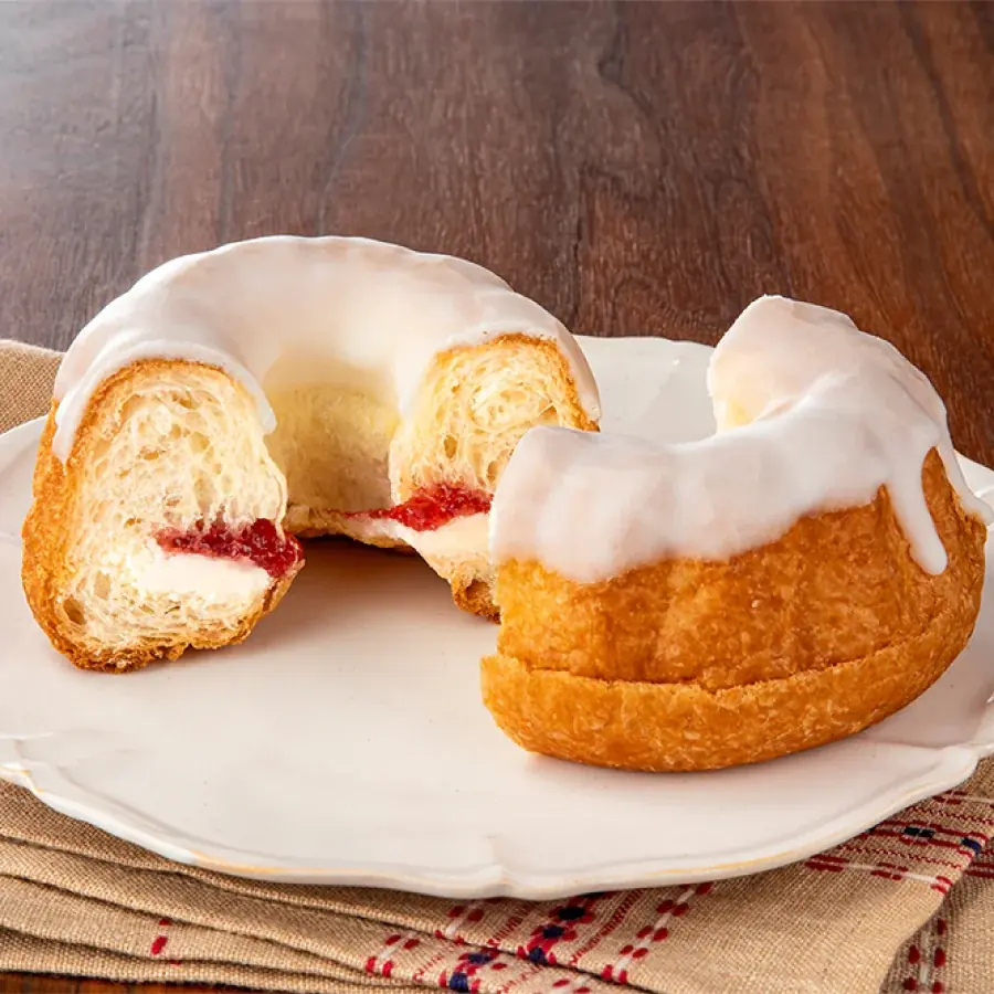 生地は歯切れの良いサクッとしたデニッシュ生地が採用され、苺ジャムとホイップのバランスで仕上げています。地元産の紅ほっぺ苺を用いたスイーツ系のベーカリー商品です。