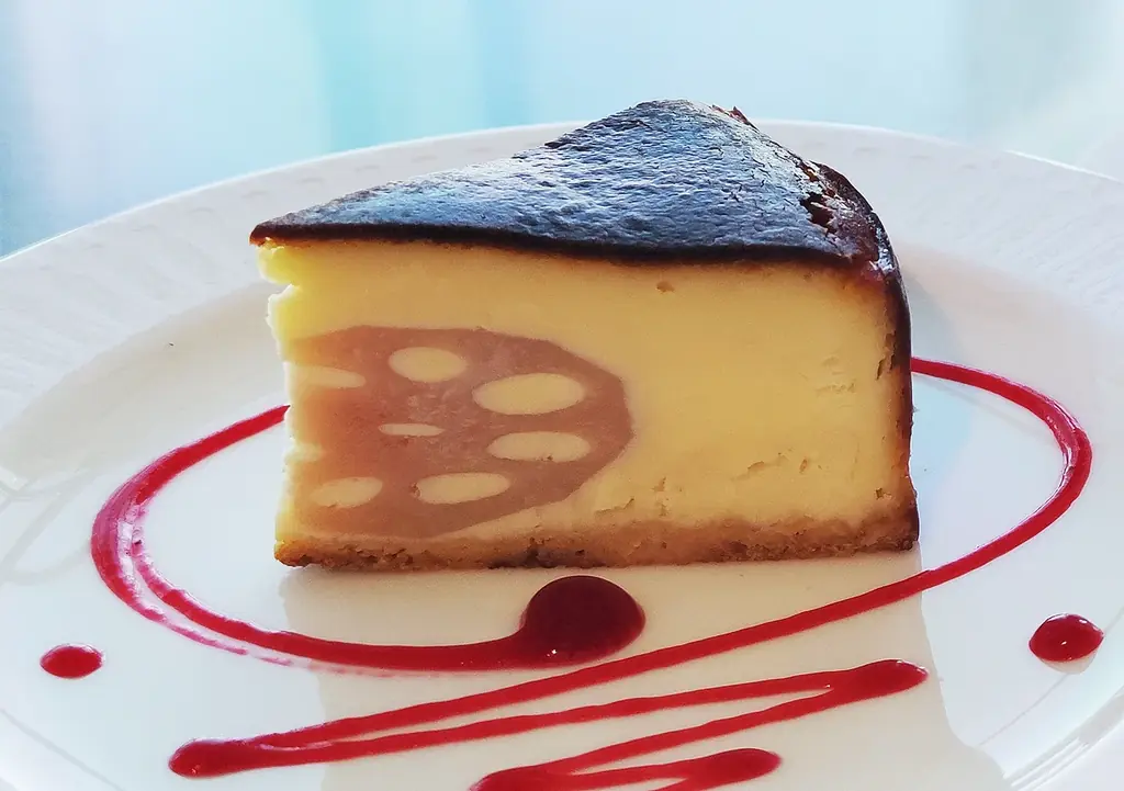 提供メニューはスパイシー蓮根、蓮根とひじきの和風サラダ(朝食オープン時のみ)と、特に注目される蓮根のバスクチーズケーキ(750円)です。蓮根を使ったチーズケーキはコーヒー・紅茶はもちろん、ワインにも合う大人向けのスイーツとして紹介されています。