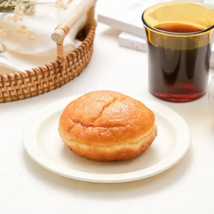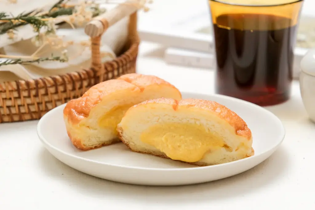 本商品は白砂糖を用いず、自然由来の糖であるきび糖を使用しています。中にたっぷり詰めたきび砂糖カスタードは、甘さが控えめでありながらコクを感じられる仕立てです。生地には無糖練乳や米油を取り入れ、もっちりとした食感と軽やかな口当たりを両立させています。