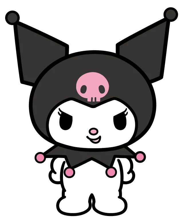 自称マイメロディのライバル。乱暴者に見えるが実は乙女チックで、イケメンが大好き。黒いずきんとピンクのどくろがチャームポイント。世界中をクロミ化するため奮闘中との設定です。