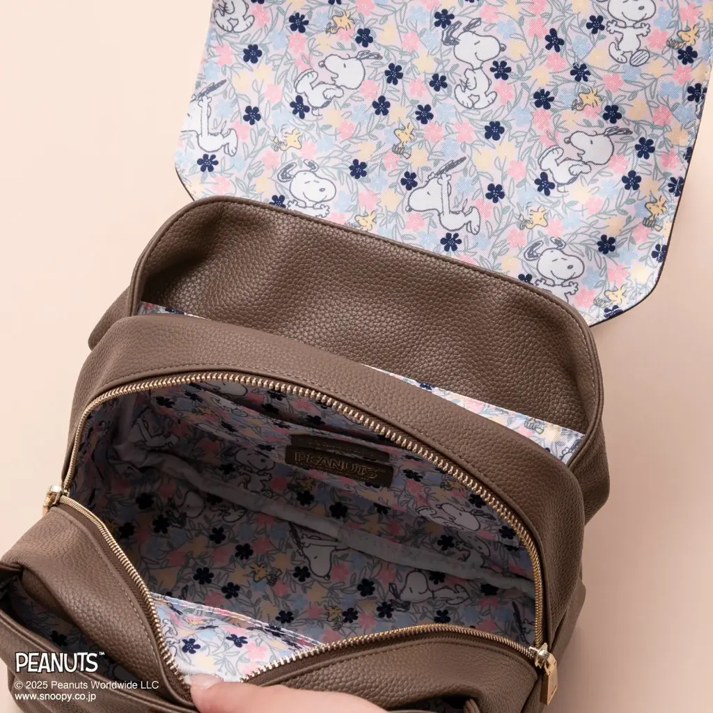 コレクションは「ピーナッツ」の世界観を軸に、フラワーモチーフやキャラクターの愛らしい仕草を取り入れたデザインが中心です。バッグや財布には刺繍や色のコントラスト、金具の配慮がなされ、日常のスタイリングに取り入れやすい配色が用意されています。